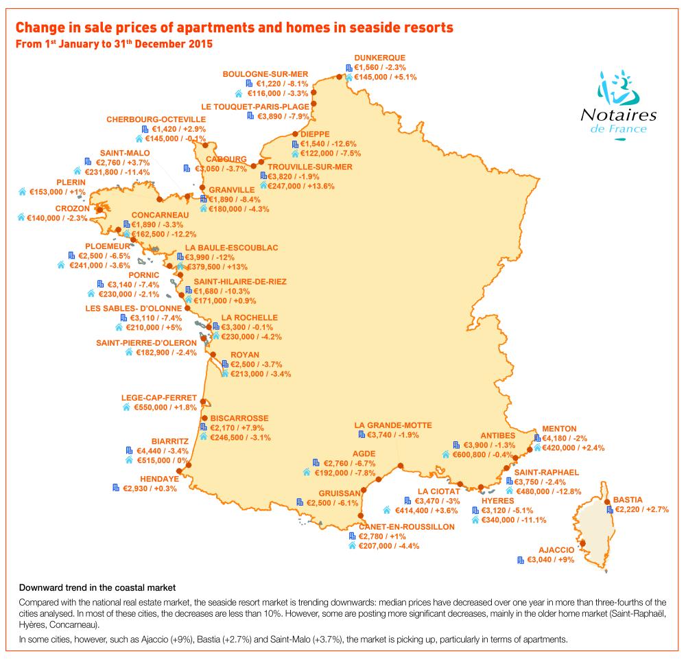 In some cities, however, such as Ajaccio (+9%), Bastia (+2.7%) and Saint-Malo (+3.7%), the market is picking up, particularly in terms of apartments.