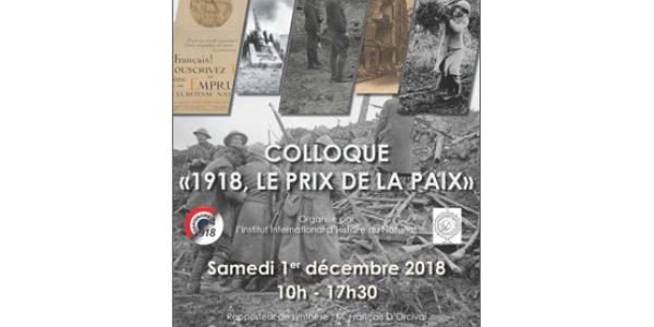 Samedi 1er décembre de 10h à 17h30, l'Institut International d'Histoire du Notariat organise un colloque sur la Grande Guerre : " 1918, Le prix de la Paix "