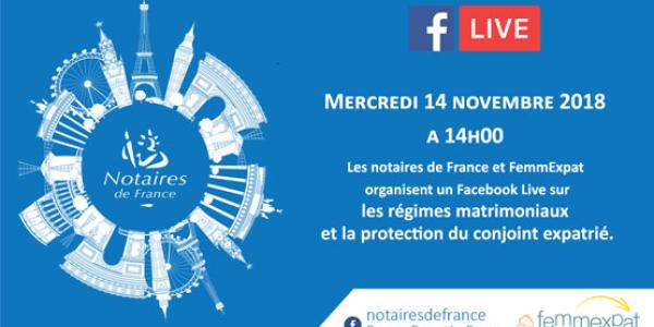 Posez toutes vos questions en commentaires sur les pages Facebook FemmExpat et Facebook Notaires de France.