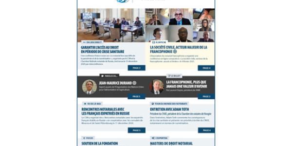 • FRANCOPHONIE : L’Association du notariat francophone a organisé une conférence en ligne consacrée à "La société civile, vecteur de la francophonie : atouts et limites" le 4 février 2021.